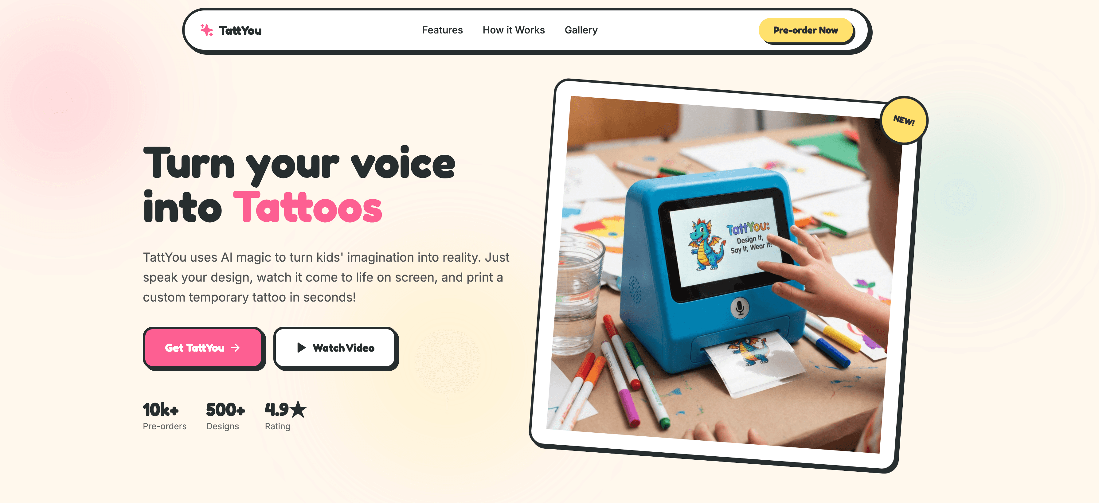 The Idea: A voice-activated device that lets kids design and print custom temporary tattoos in seconds using AI and specialized water-transfer paper.