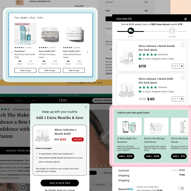 Designed contextual upsell and cross-sell popups triggered at key moments in the add-to-cart and cart experience, optimizing placement, messaging, and interaction patterns to increase AOV while maintaining a seamless, non-disruptive user flow.