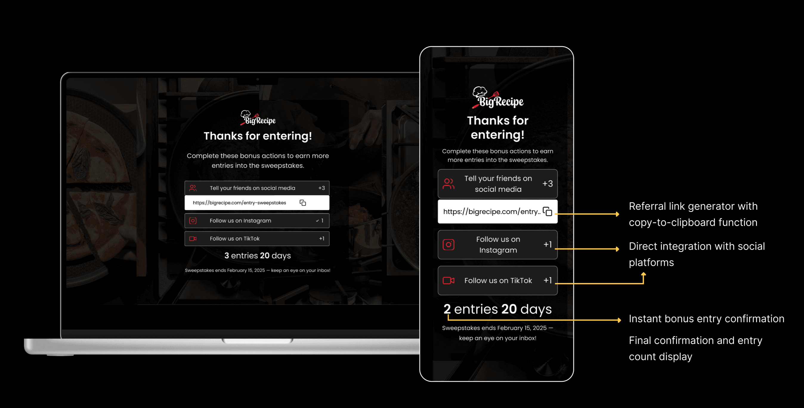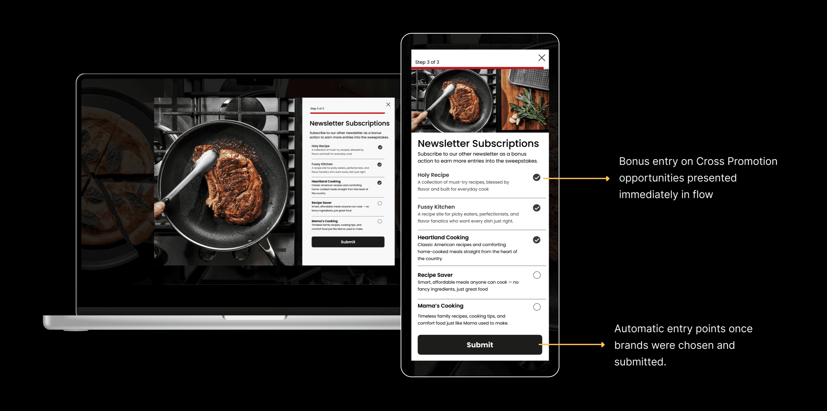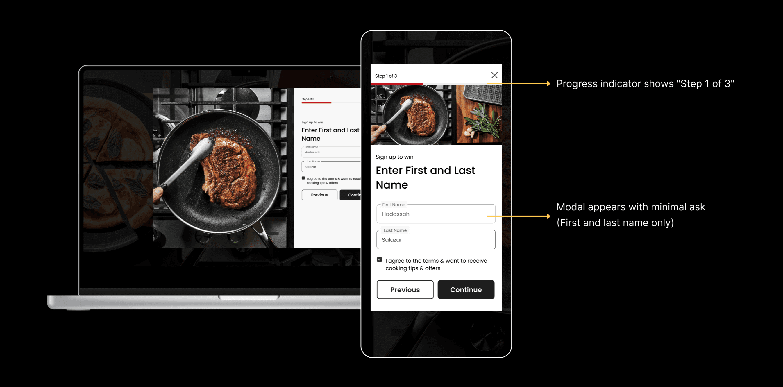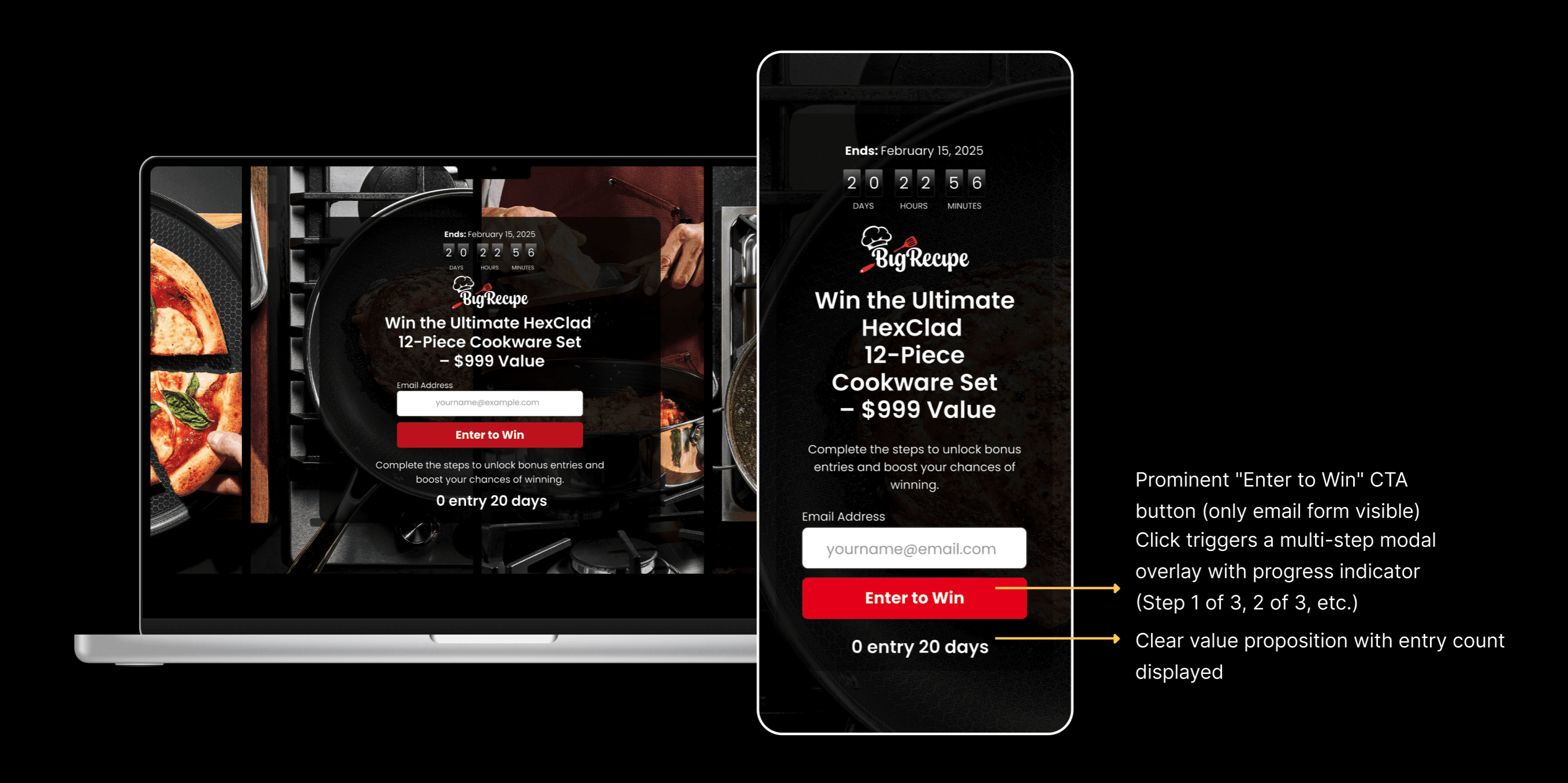 Roll out the multi-step pop-up modal as the default experience for all future sweepstakes and lead generation campaigns.