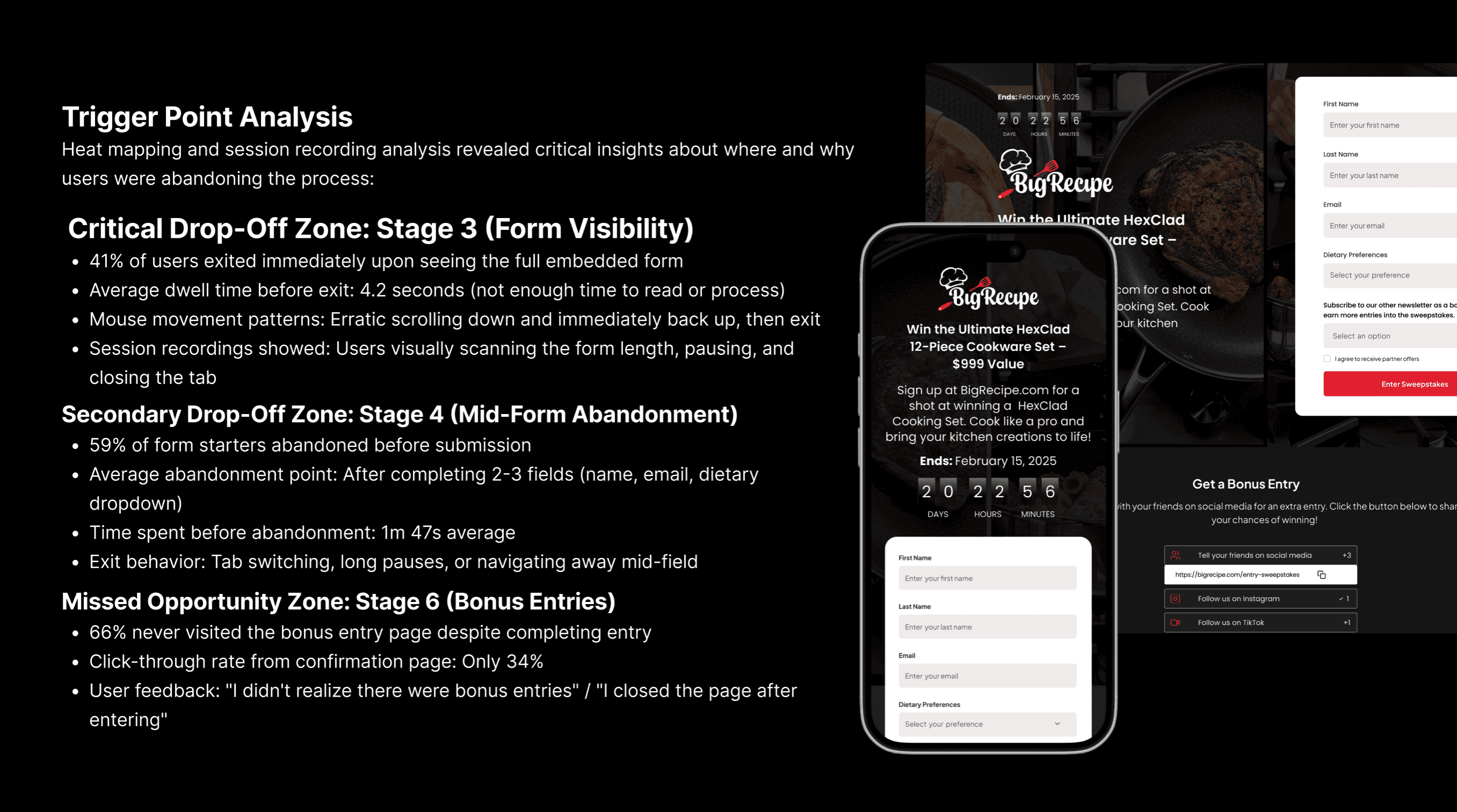 The success of this approach demonstrates the power of progressive disclosure and strategic flow design in optimizing complex forms. For Big Recipe, this translates to a more cost-effective acquisition strategy and a larger, more engaged audience for future campaigns.